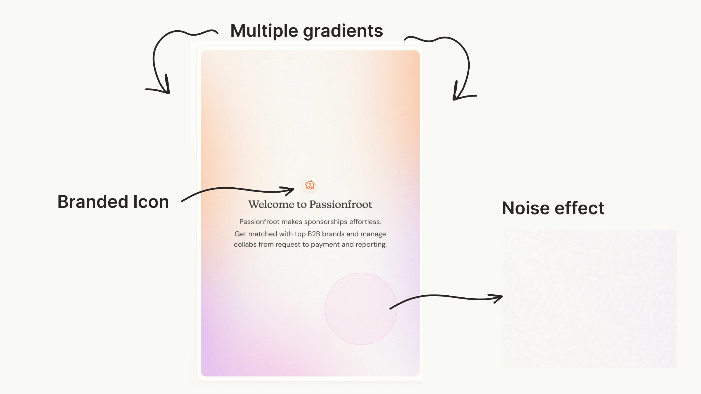 Some people have trouble with the login screen. It's just a simple form, and putting two inputs in the middle of the screen feels boring. But there is a good way to make it look great. So, this is what you usually have. There are some other things, like social login and a sign-up link, but that's the basic idea. What you can do instead is to split the screen into two parts. One part is designated for the login form, while the other part can be used for any content you choose. Usually it's some kind of graphic with text that encourages users to sign up, or something similar. One of my favorite examples is Passionfroot's page. At first glance, it doesn't look like much, but when I looked closer, I saw that it has five gradients, a noise effect, a nice branded icon, and the colors and fonts look good overall. |